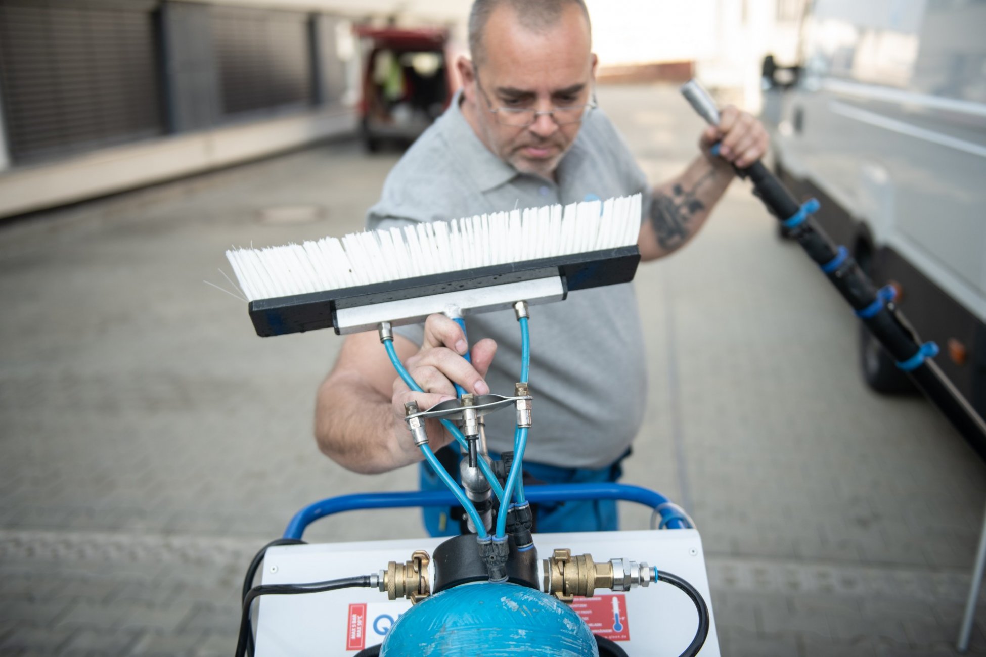 We wash windows, glazed surfaces and skylights, including at heights, but also photovoltaic panels and façades. We have the necessary technology at our disposal, thanks to which no window is too high for us. We use demineralized water and Puraqleen technology.