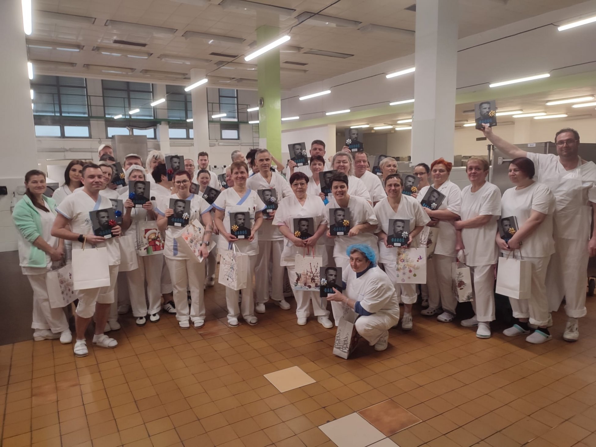Serdeczne podziękowania kierujemy do całego personelu medycznego, pracowników THP i jednocześnie do zespołu kucharskiego, który codziennie przygotowuje śniadania, przekąski, kolacje, a także gotuje ponad 3 000 obiadów dla pacjentów i pracowników szpitala.