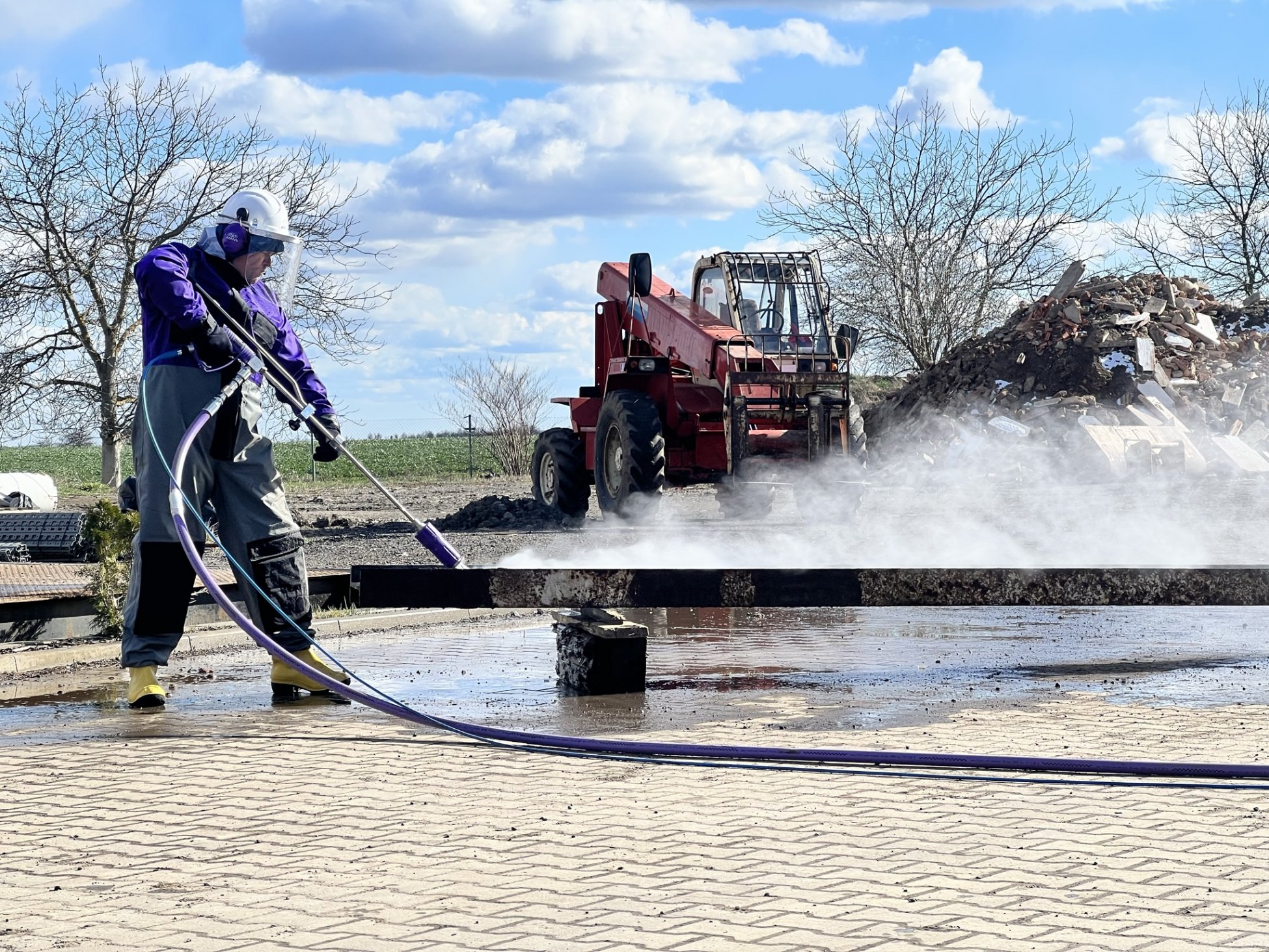 Rozszerzyliśmy nasze wyposażenie technologiczne o mobilne urządzenie wysokociśnieniowe FALCH o ciśnieniu roboczym 2500 bar, przepływie wody do 25l/min. Przy pomocy strumienia wody o takiej mocy możliwe jest szybkie i skuteczne czyszczenie zakleszczonych zanieczyszczeń w przemyśle ciężkim i lakierniach, usuwanie farb, rdzy, kamienia, ale także np. przy hydrodemolition.